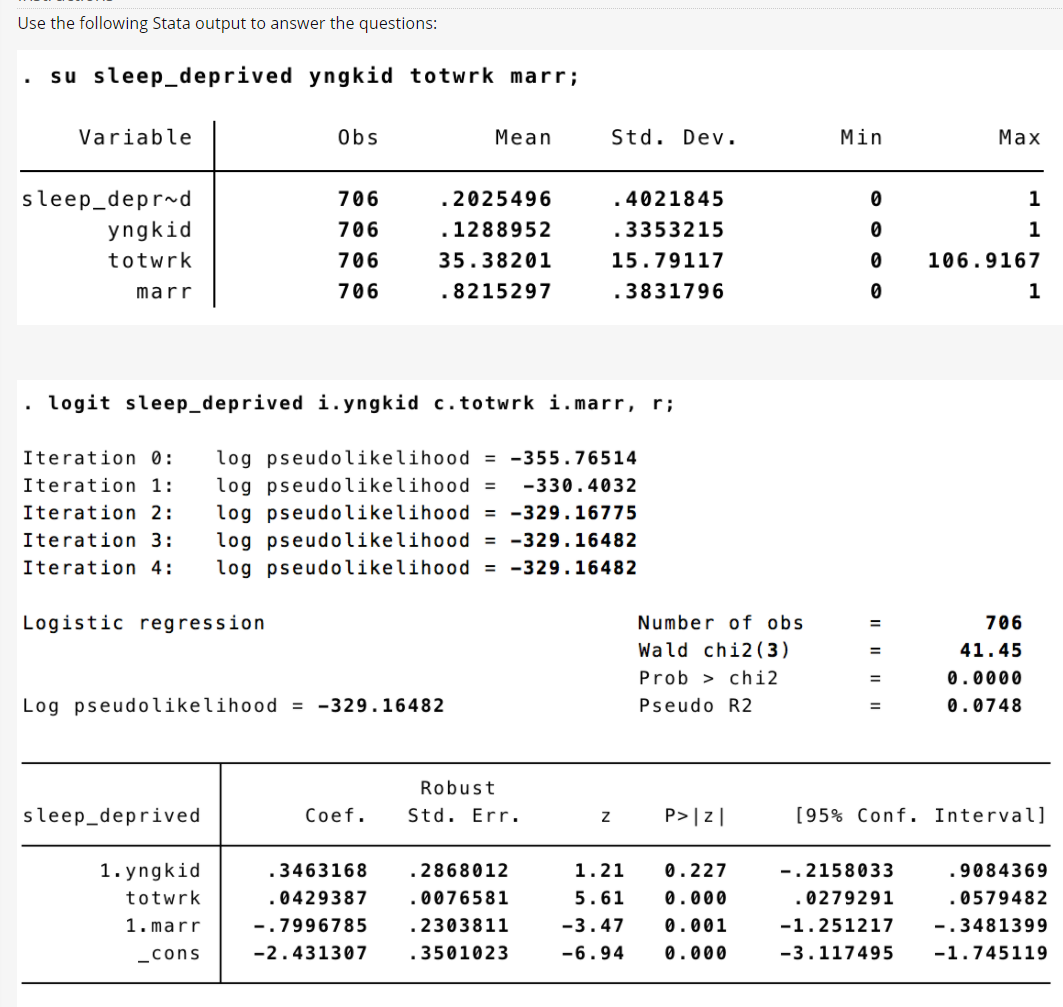 Solved Use The Following Stata Output To Answer The Chegg Com